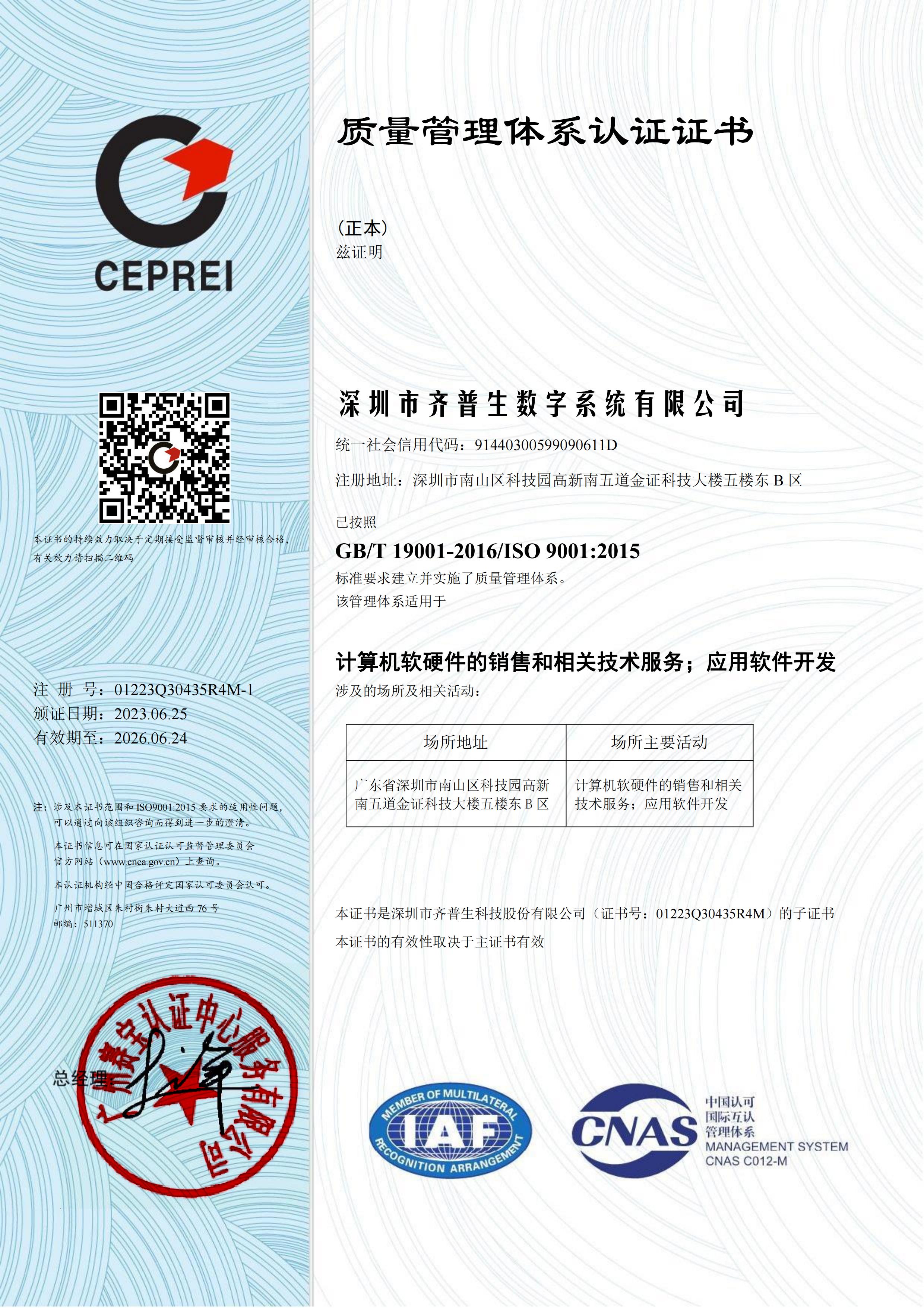 • ISO9001證書(數字)