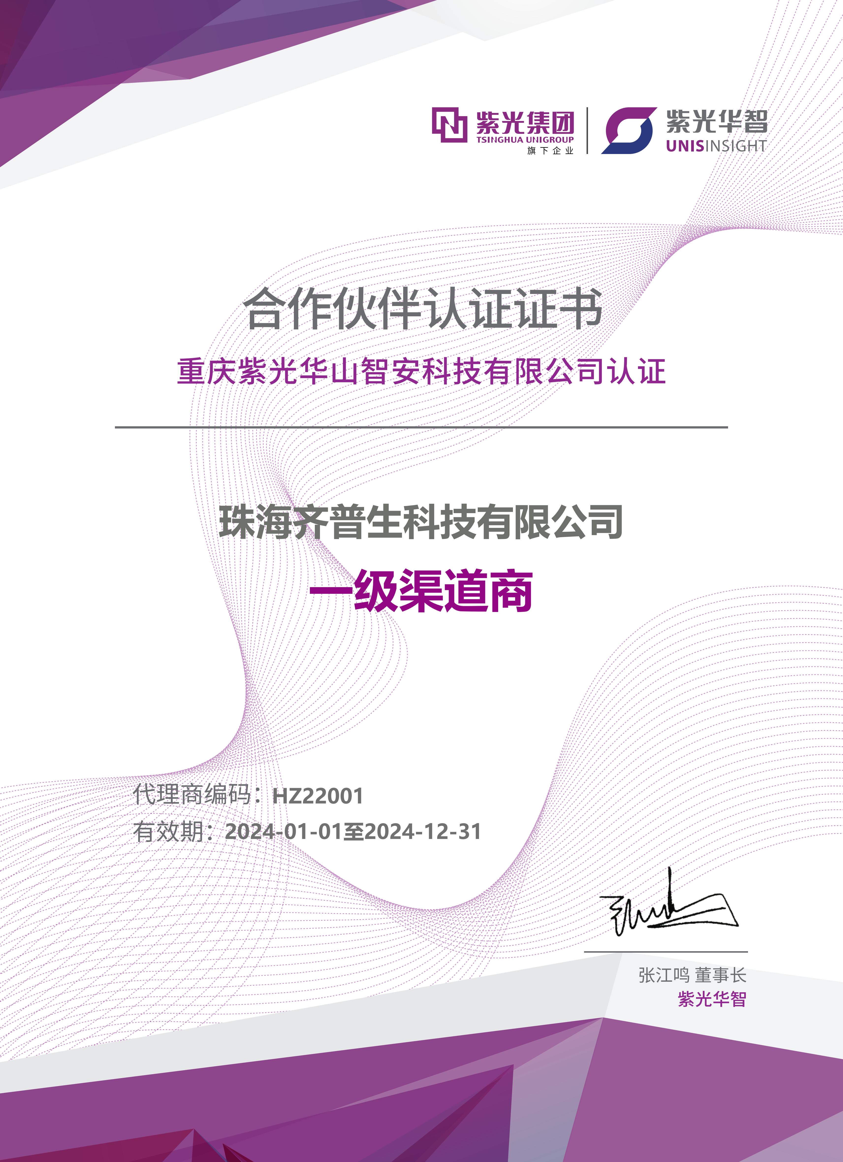 • 2024紫光華智一級渠道商(珠海公司)