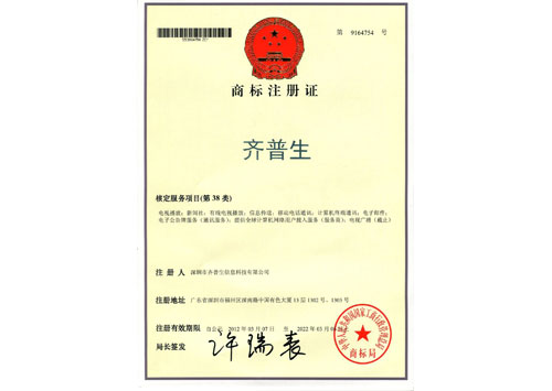 • 齊普生商標(biāo)注冊證