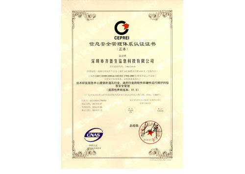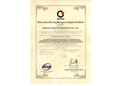 • 信息安全管理體系認(rèn)證證書(正本英文)